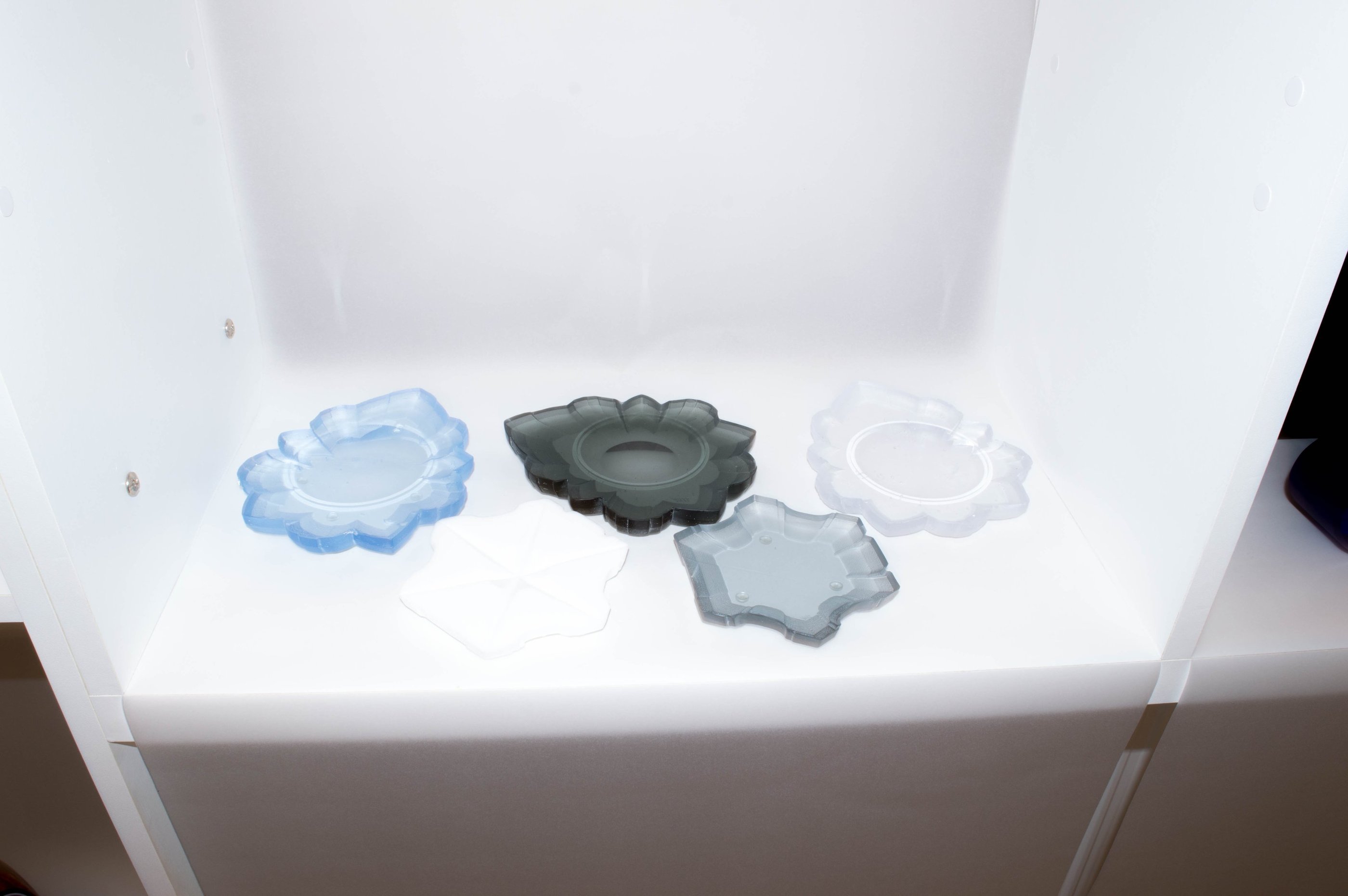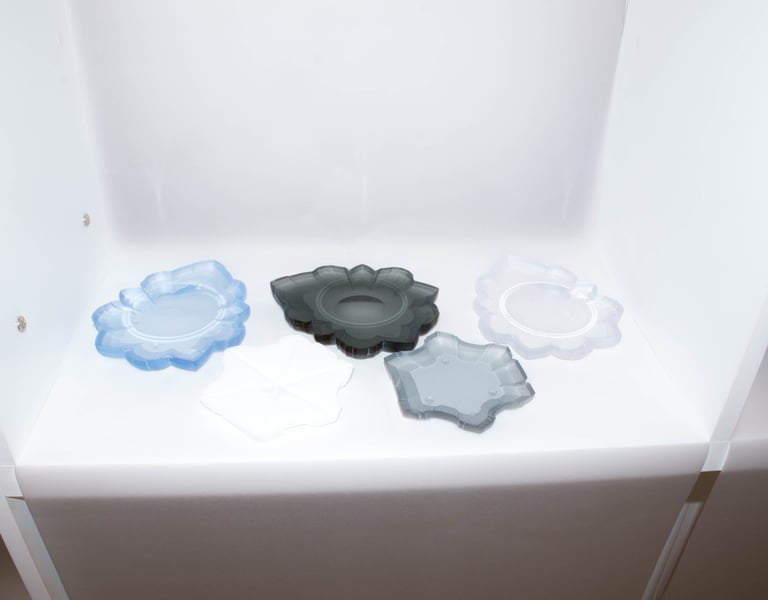 Rituální misky vycházející z kolekce navazující na architektonické řešení staveb Jana Blažeje Santiniho Aichela. Ručně broušené čočky na povrchu misek decentně doplňují půdorysy staveb - kaple svatého Jana Nepomuckého na Zelené hoře a kaple Panny Marie v Mladoticích.